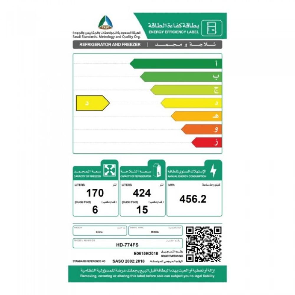 ميديا ثلاجة بابين ، مقاس 21 قدم، باب مزدوج، مانع تجميد، رف زجاج، استيل مع جانب فضي، م/HD774FS